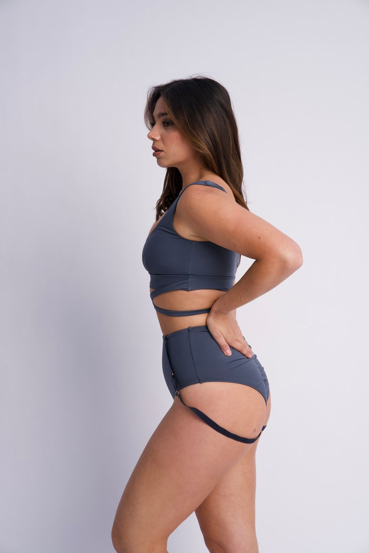 The coverage of this design means you can move without worries, whilst the scrunch bum gathering and suspender details work wonders to give you shape. Trust us - your look will be anything but boring!These bottoms work well with any outfit, and look especially striking when paired with our matching Kehlani top.