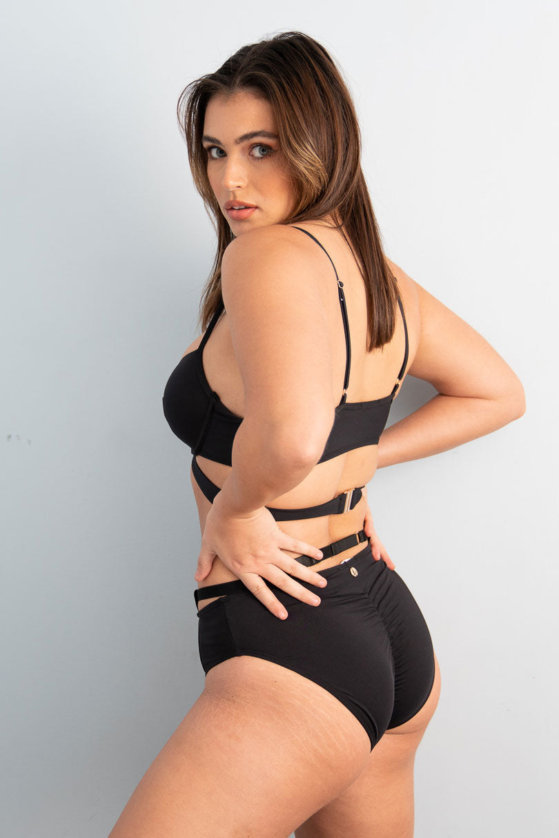 Elevate your intimates collection with the all-new Alice Low Waist Bottoms. The cheekiest pair in our Alice collection, dare to bare in these bottoms with a sexy satin elastic strap detailing around the waistline, closed with scrunch bum rouging. Our classic Lunalae gold detailing enhances your behind while adding a touch of class.?These bottoms can be paired with the Alice Top for the ultimate seductive look.?