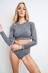 Ally Long Sleeve Crop - Shaping Breathable Top Recycled Grey