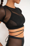 This sheer, mesh top offers coverage at the front whilst the backless cut works perfectly to showcase skin and keep things cheeky and fresh! The loose ties allow you to perfectly fit the top to your body. Wrap them around you to snatch that waist and highlight your figure!Transform your favourite outfit with the Ember top, or pair with our Gigi top and Bellani bottoms for the ultimate mesh look.