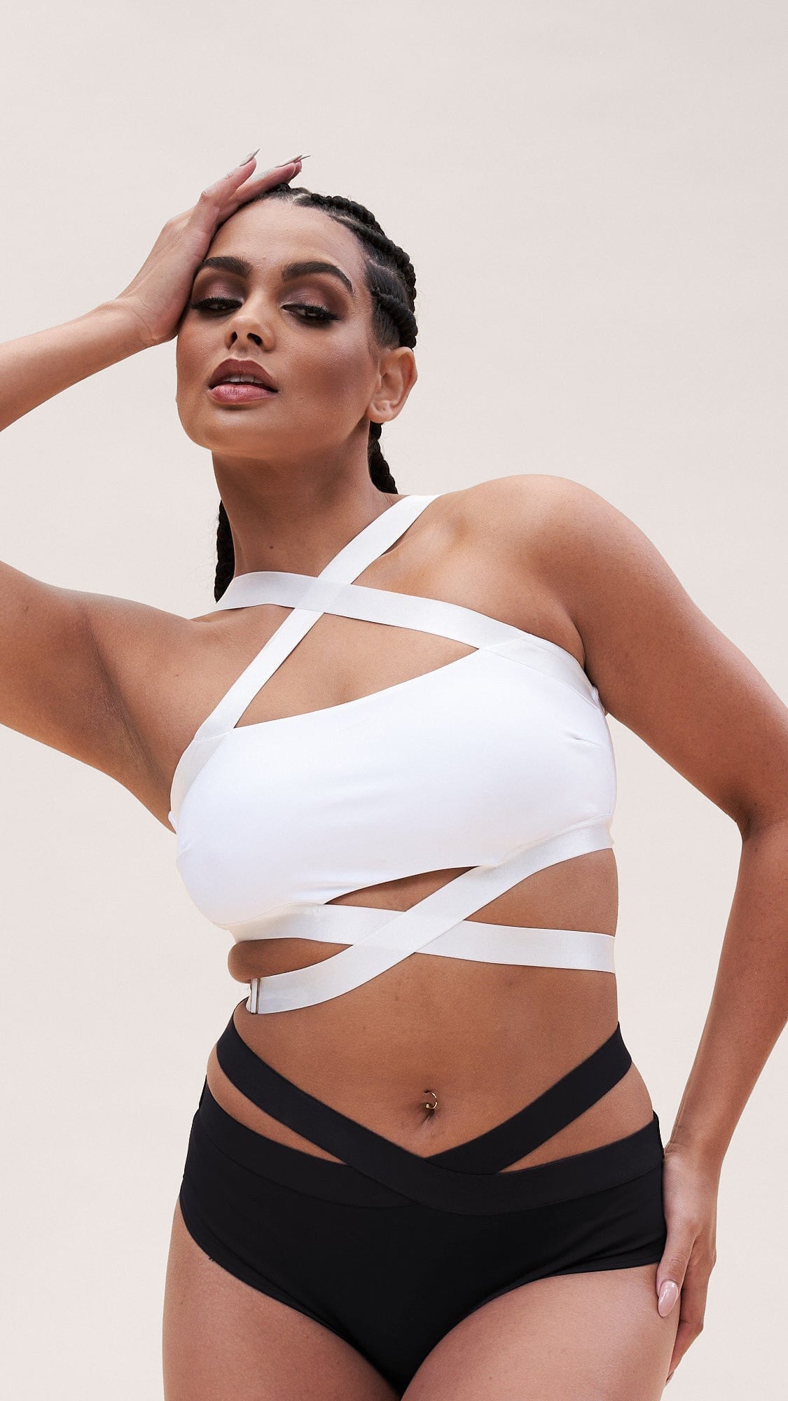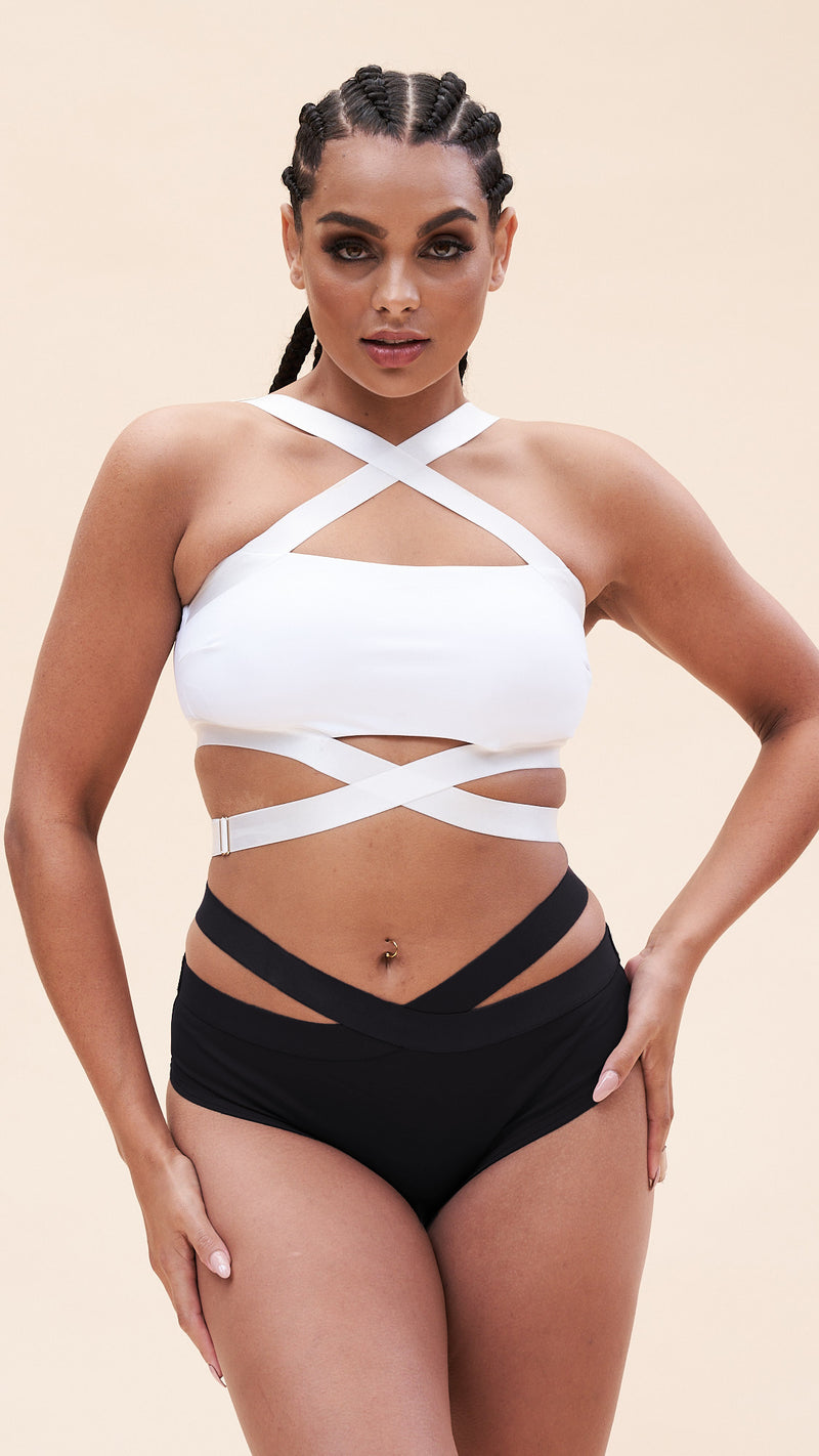 - Cross strap detailing around under bust