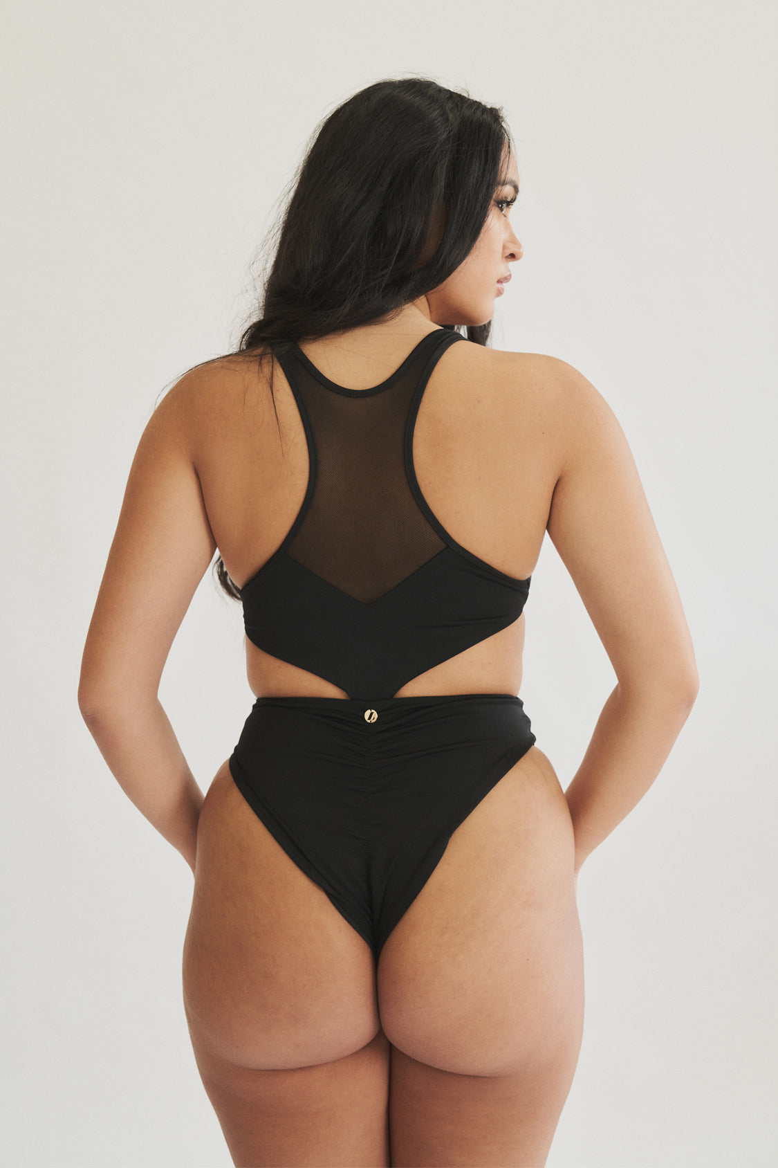 Want to up your bodysuit game? Say hello to Teagan! With a plunging sheer mesh panel and waist-cinching cut-outs, she’s designed to show off in all the right places. The racerback keeps things secure while the cut outs and high cut cheeky bottoms give you plenty of skin to grip, so you can dance and turn heads without a second thought. Sculpting, statement-making, and just a little bit cheeky, Teagan isn’t here to behave.