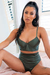 A simple cut lets the satin material - and you - shine! Tori’s high waistline flatters your figure and keeps you covered. Not to worry though, the keyhole cutout at the back lets you tease a little skin whilst the scrunch bum gives a cheeky appearance and keeps things fun.