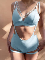 Zena Bottom - Garter Overalls Scrunch Shorts Crystal Blue